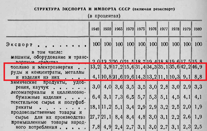 Доля экспорта топлива в 1985 году в развитые капиталистические страны составляла 77% от общего экспорта в эти страны.