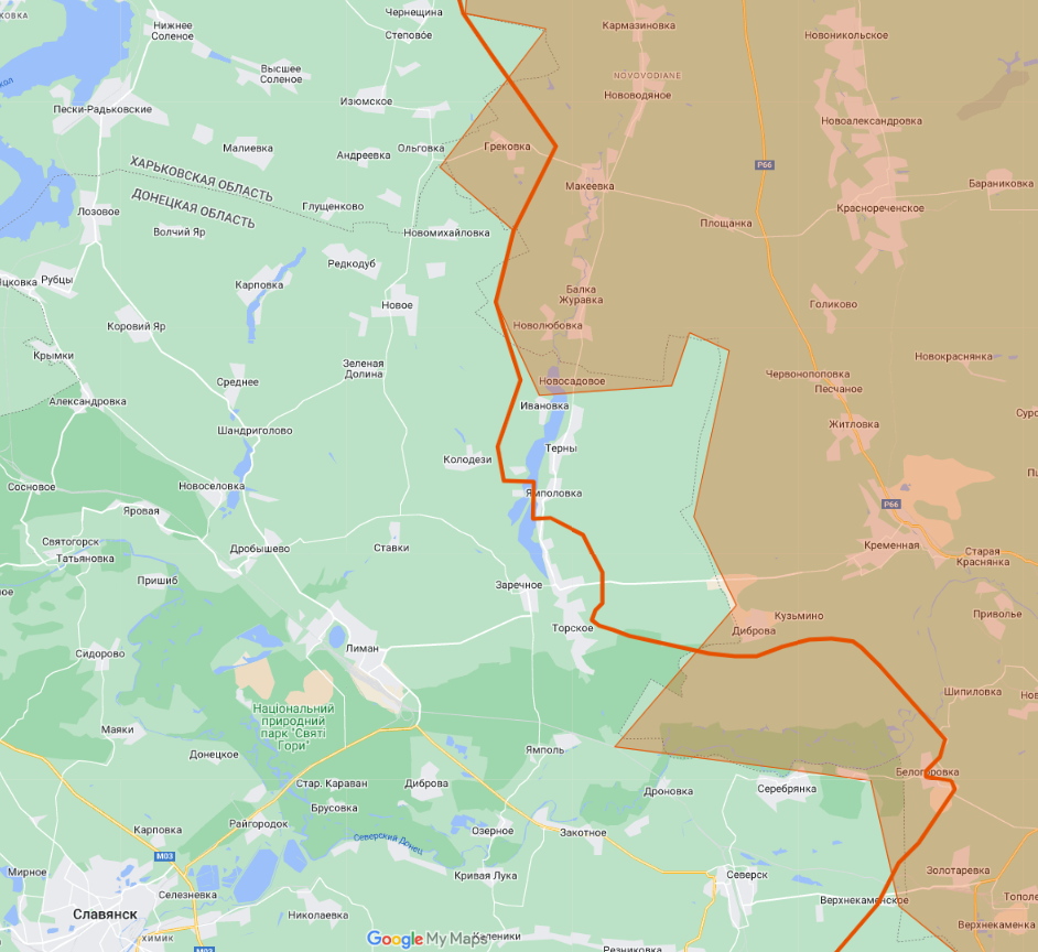 На данный момент по моим данным за линией фронта остались Белогоровка и Грековка. В Белогоровке сейчас идут бои.