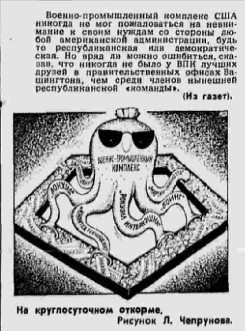 Вооружаются, оправдываясь ВАШИНГТОН, |ТАСС|. Политика "пушки вместо масла" остаётся магистральным курсом администрации США. Это вновь подтвердило очередное выступление президента Рейгана по радио. Глава Белого дома вновь рекламировал свою программу «перевооружения Америки», которая направлена на взлом примерного стратегического паритета в попытке обрести военное превосходство над Советским Союзом. Стращая слушателей пугалом «советской военной угрозы», он оправдывал гигантское наращивание военных расходов, настаивал на одобрении конгрессом всех крупных систем вооружений. При этом он вновь допустил грубые выпады в адрес СССР, его внешней политики. Как известно, форсируемая Белым домом гонка вооружений обойдётся американским налогоплательщикам в ближайшие годы более чем в 2 триллиона долларов. Массированная перекачка национальных средств в непроизводительную военную сферу резко обострила экономические проблемы страны, привела к небывалым дефицитам федерального бюджета, уровень которых сейчас приближается к 200 миллиардам долларов в год. Рейган был вынужден признать, что эти дефициты представляют серьёзную опасность Для экономического благополучия страны. Он предупредил, что если не будут приняты срочные меры по их сокращению, то нынешний «колоссальный пассив» в течение следующих трёх лет «вырастает ещё на три четверти триллиона долларов», что «поставит под страшную угрозу будущее Америки». Вопреки всякой логике и здравому смыслу Рейган вместе с тем утверждал, что эти дефициты вызваны не гигантскими бюджетами Пентагона, а социальными расходами. Исходя из такой «посылки», он потребовал от конгресса продолжить ликвидацию важнейших социальных программ. В этой связи наблюдатели напоминают, что за годы пребывания в Белом доме администрация Рейгана уже урезала социальные расходы больше чем на 100 миллиардов долларов. Это не только не уравновесило федеральный бюджет, но довело его дефицит до рекордного уровня. Наблюдатели рассматривают выступление Рейгана как часть кампании администрации по обработке общественного мнения и конгресса в пользу своих милитаристских программ. В частности, в палате представителей в начале будущей недели состоится голосование по дальнейшему финансированию программы строительства ракет первого удара МХ.