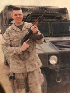 В морпехах. Как военный журналист. Как пишут - на службе статьи писал, фотографии делал. То ли военный журналист, то ли спец по психологическим операциям. То ли политработник. Как и Прилепин почти, получается (как пишут, кстати, Прилепин в 2014 посещал Донбасс и писал статьи в Комсомолку).