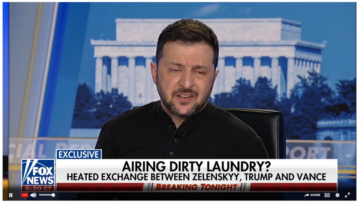 Эпиграф: «Как Трамп и Венс сдержались и не вмазали этому подонку — чудеса выдержки. Отъезд Зеленского из Белого дома можно смотреть под группу «Ленинград». (Официальный представитель МИД РФ Мария Захарова, намёк на матерное песенное произведение Сергея Шнурова «Дорожная»)