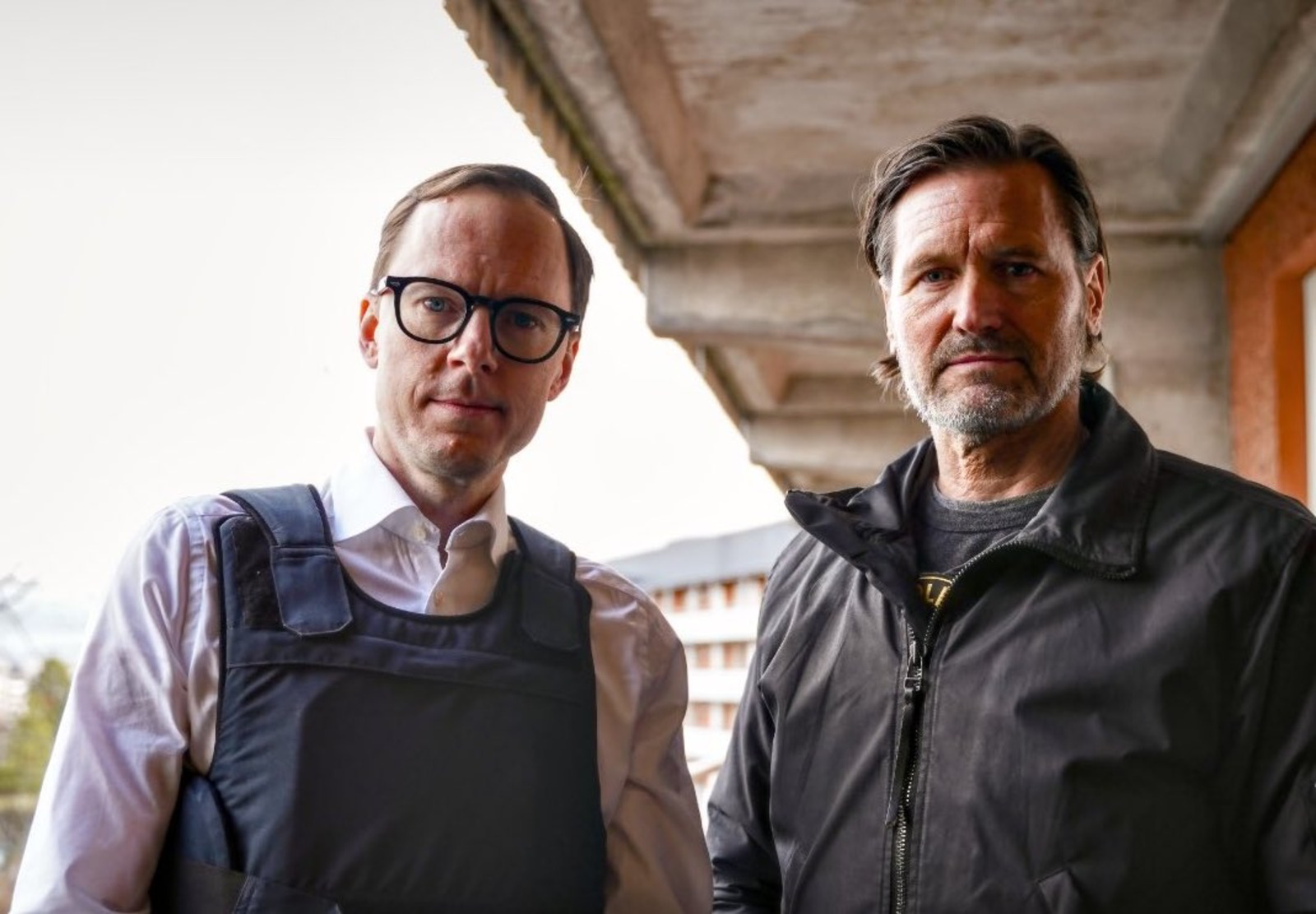 После визита он поделился фотографией X. На снимке он изображен вместе с Мартином Мелином, оба в бронежилетах.