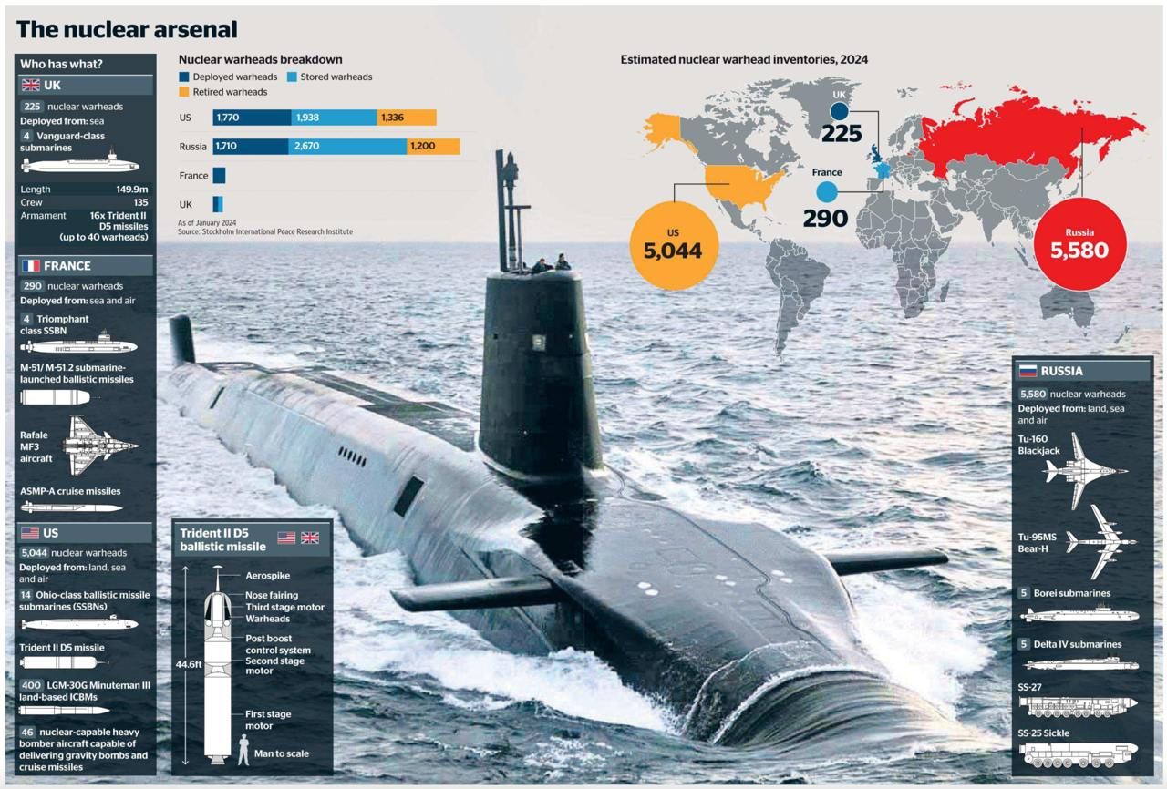 Что ж, хорошую в этой связи инфографику для своих читателей представила сегодня The Times. Наглядно показано сравнение ядерной мощи России, США и этих фанфаронов. Полезно сравнить:
