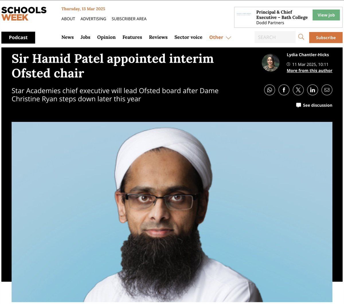 Управление по стандартам в образовании Великобритании возглавил Хамид Патель. Он будет инспектировать школы и учебные заведения в Англии, чтобы убедиться, что они «продвигают британские ценности».