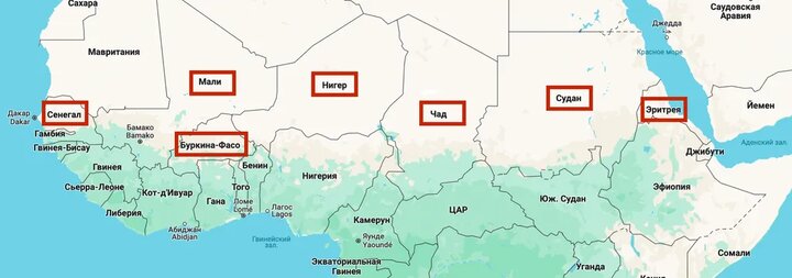 Т.е. (смотрим карту) со стратегическим присутствием России во ВСЁМ Сахеле согласны все государства этого региона.