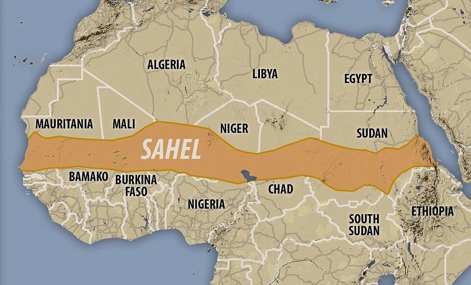 2. В это время, Зеленский отправляет наёмников бритто/французов- регулярные части ВСУ, в Африку- "Сахельский треугольник" (малоконтролируемая территория ислам-радикальных террорганизаций, включая местные филиалы иг/аль-кайеды), на стыке границ Мали/Нигера/Буркина-Фасо- Альянса государств Сахеля/AES