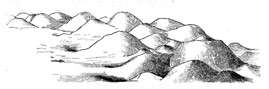 Рис.9.1. Старинные русские курганы у села Городища. Рисунок, сделанный во время раскопок графа Уварова. Взято из [305:0], с.84.