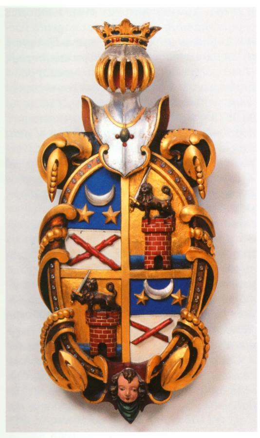 Рис.9.13. Герб известного шведского придворного Якоба Дельгарди. Первая половина XVII века. Мы видим два османских=атаманских полумесяца со звездами. Такой полумесяц был одним из основных государственных символов Великой = "Монгольской" Империи XIV-XVI веков. Взято из [618:0], с.105.