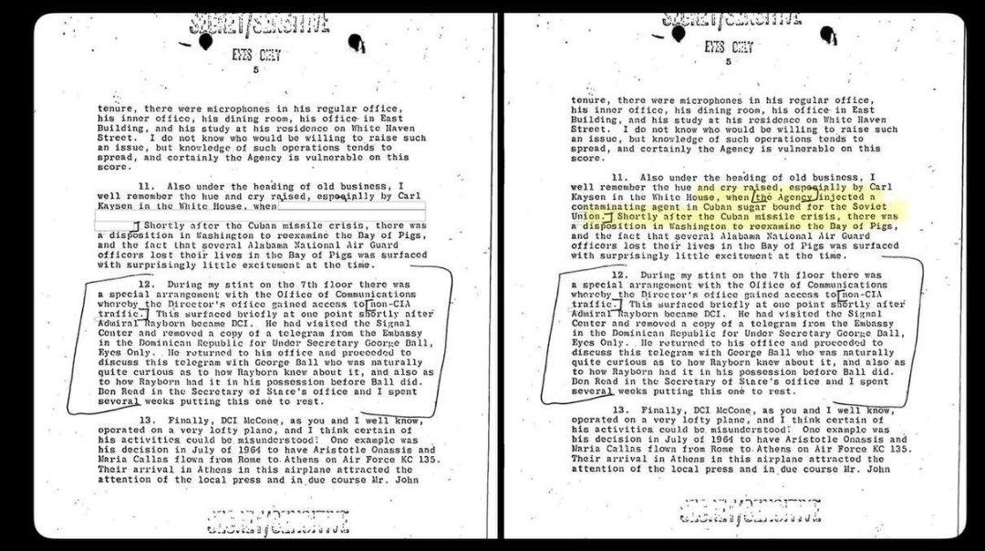 В рассекреченных документах об убийстве президента США Джона Кеннеди американский журналист Бен Нортон обнаружил информацию о том, что ЦРУ добавляло отравляющие вещества в поставляемый в СССР кубинский сахар, а также поддерживало бывших нацистов, занимавшихся диверсиями и саботажем на территории ГДР.