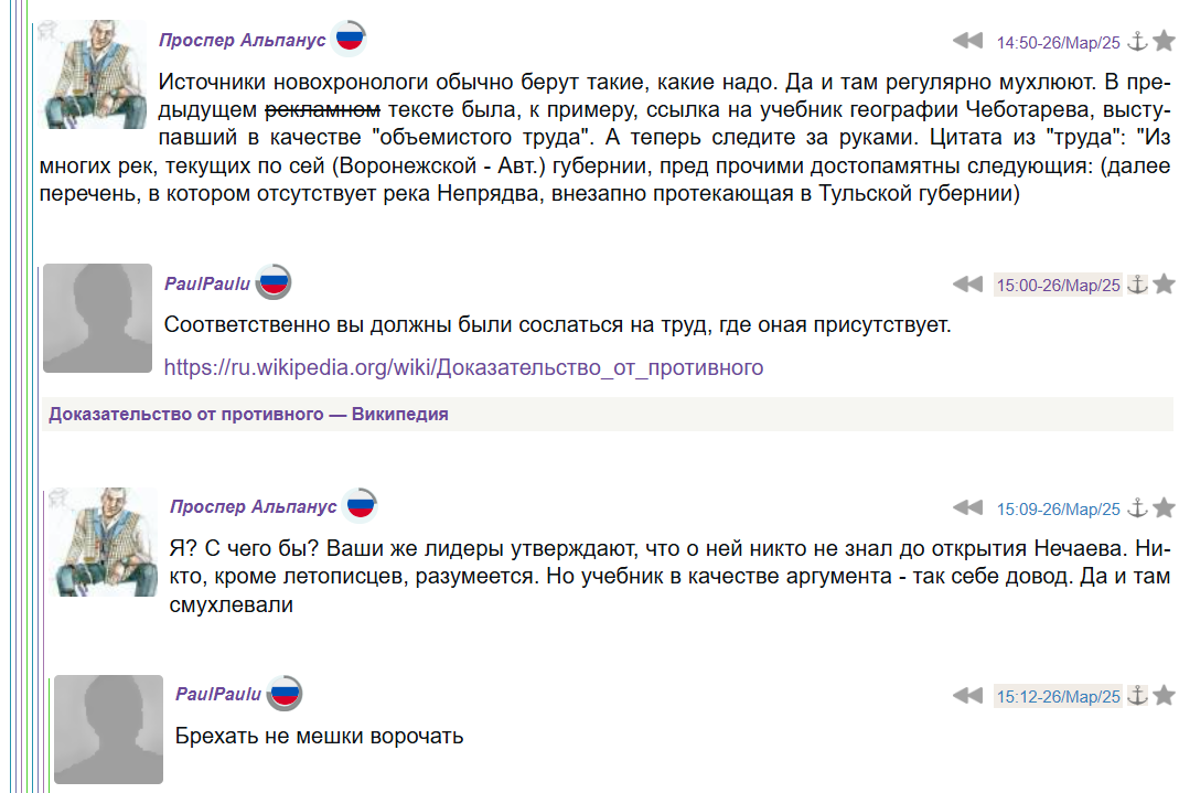 Нет проблем с логикой? А что там с Доном, который впадает в море в Задонщине? Он же впадает в море и в других источниках. Он же течет через степи половецкие. Ну предьявите мне вашу логику.