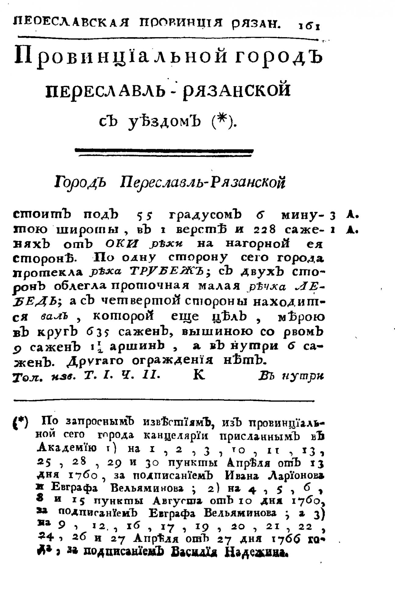 Нечетко определено еще место под будущий "древний" город Рязань. Видно, что очень хочеться назвать это место Рязанью, но пока не можется. Зато Анна Салтыкова навсегда поселилась в Википедии. Топоним ТРУБЕЖ раскидали по многим Переславлям, а до топонима ЛЕБЕДЬ руки не дошли. Разница по широте около градуса (1 градус примерно 111 км).