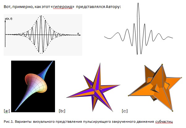При этом Автор тут же допустил, что сама та форма силового поля в виде пульсирующего гиперболического конуса, по которому – по его представлению - и осуществляется закрученное движение пакета элементарных частиц (называемая Автором по незнанию «гипероидом») - это и может быть, видимо то, что называется «кварком». Но было уже поздно.