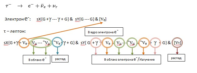 «Лишняя» пара фотонов γ --- γ либо сразу в момент распада переходит в ИЗЛУЧЕНИЕ, либо на первом этапе уходит из пульсирующего солитона sY в орбитальное облако электрона, повышая тем самым его энергию (однако, негэнтропия пары γ --- γ закономерно снизилась в момент распада: в мюоне эта пара двигалась по спиральным закрученным силовым линиям пульсирующего солитона, а в электроне – по круговой или близкой к ней «облачной» орбите вокруг ядра).