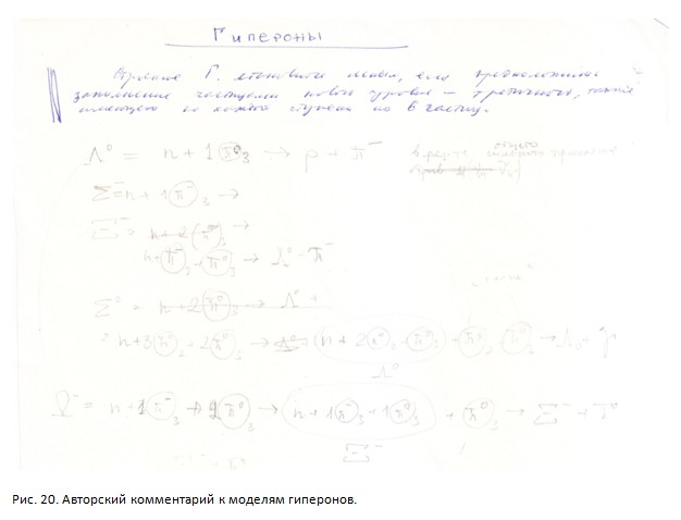 К сожалению, Автор не стал прорисовывать модели отдельных гиперонов, ограничившись разбором реакций их взаимодействия и таким текстом (см. Рис. 20):
