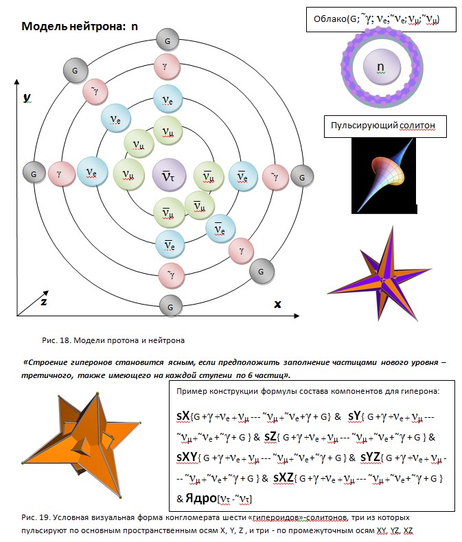 Я уже пару раз в комментах честно признался, что Автор в те годы был умнее меня (моя сфера деятельности очень далека от физики). Выложил, поскольку надеюсь, что кто-то разберется и увидит в этой модели Автора и кварки и глюоны и прочее (в самом начале статьи я написал, что гипероны (или пакеты частиц, "кольца") Автора может и есть кварки).