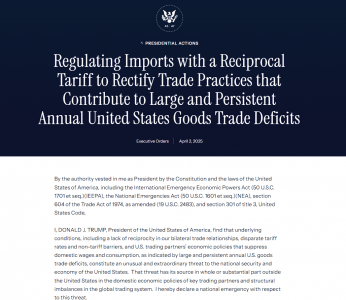 В только что подписанном указе он объявляет "чрезвычайное положение", вызванное угрозами внешнеторгового дефицита, и объявил это плодом интриг других стран, а не надувания финансовых пузырей и диких долговых пирамид внутри самих США.