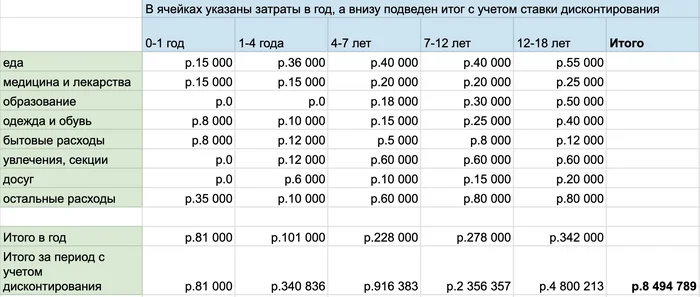 Вот на ту же тему пост из СМИ - нижняя оценка на одного ребенка с 0 до 18 лет - 8.5 млн рублей (так же упоминается что реально это где-то 10 млн рублей).