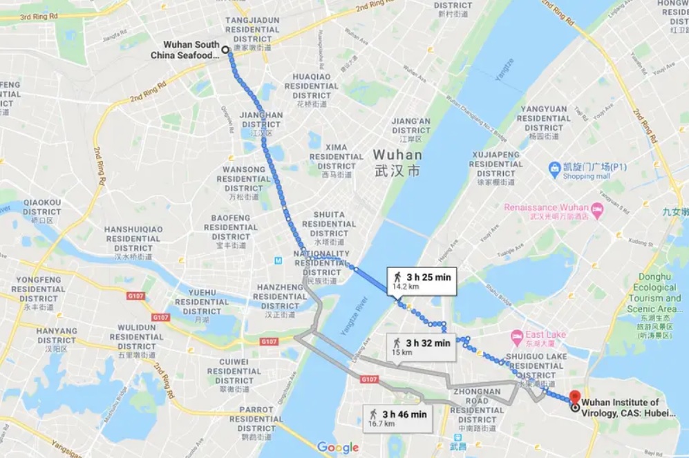 Теперь посмотрите на карту Китая и скажите, какова вероятность того, что спустя 4 года аналогичный вирус сам собой случайно появился на рынке в том же Вухане, да ещё всего лишь через дорогу от той самой лаборатории, где работами руководит та самая Ши Жэнли.»