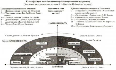 Гумилев конечно молодец, дал толчок пониманию общности и движущих сил, но на сегодня это глубоко устарело и разбивка с категоризацией совершенно другая. Да и само определение пассионария стоило бы пересмотреть, потому как есть категория пассивных пассионариев, которые зачастую влияют сильнее чем активные. Их еще называют серыми кардиналами.