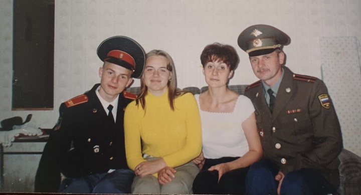 Курсант Суворовского училища Андрей Онькин с сестрой Александрой и родителями – Сергеем Павловичем и Мариной Васильевной