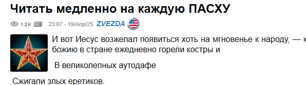 Сюр какой то. Советская звезда, с американским айпи, заставляет на Пасху читать, какую то религиозную ересь