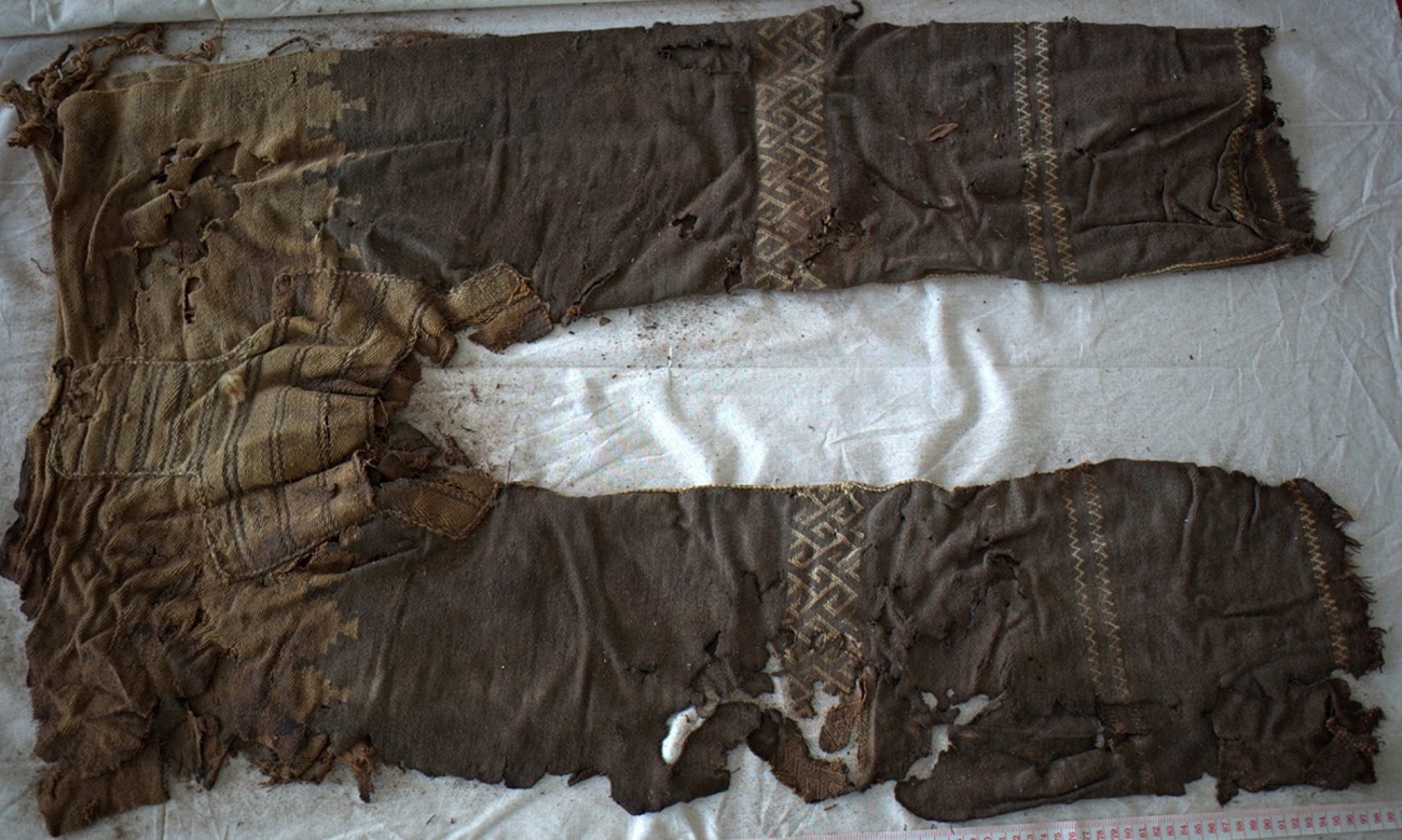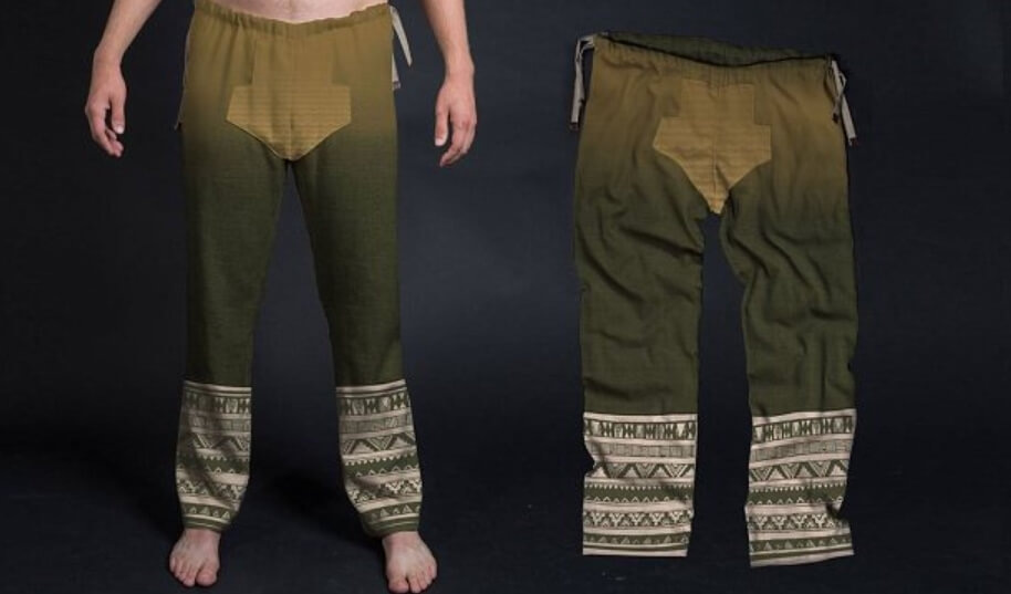 На коленях использовался метод плетения ткани, который похож на используемый в создании гобеленов. Он делает ткань менее эластичной, но во много раз увеличивает ее прочность. Также брюки был оснащены прочным поясом, который мог надежно удерживать одежду человека во время активных боев. В общем, одежда древнего воина была продумана до мелочей, за что ткачей остается только похвалить. Причем штаны были сделаны из единого куска ткани, ученые не нашли признаков того, что она была разрезана.