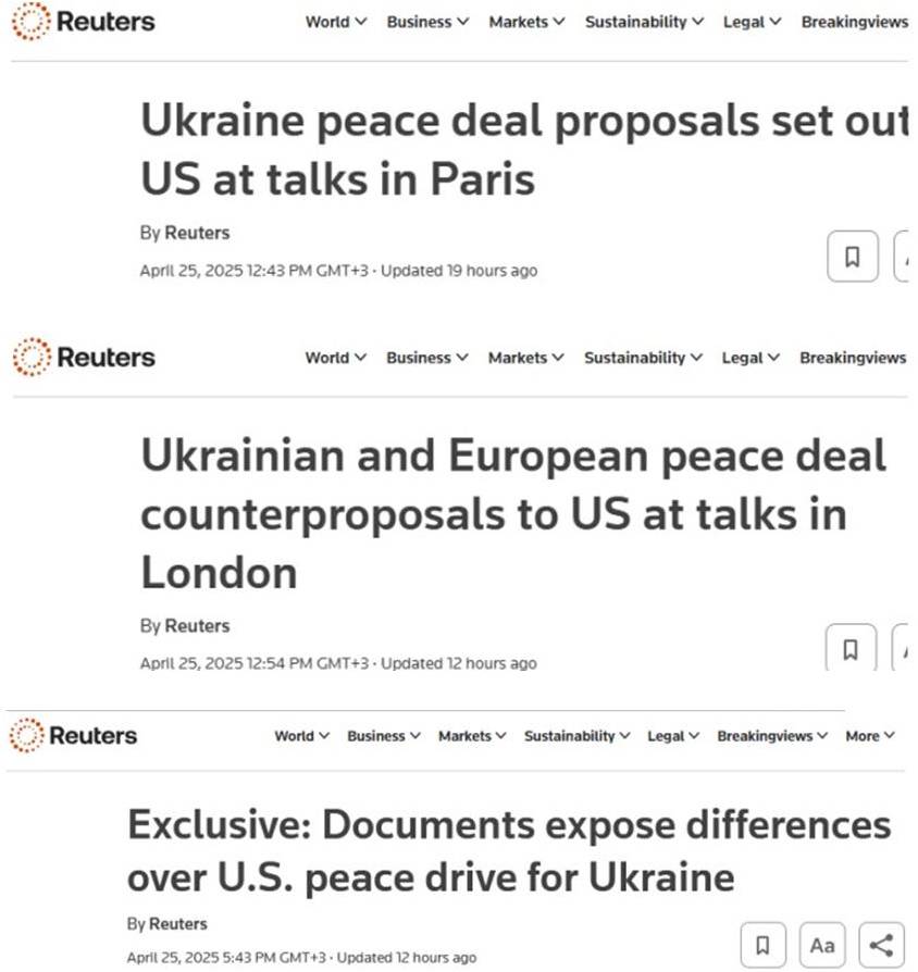 Это понимают олигархи, которые составляют влиятельные группировки вокруг президента Дональда Трампа в Вашингтоне и президента Владимира Путина в Москве. В ходе переговоров по окончанию войны Трамп написал в Твиттере, что "близки к заключению сделки" 23 апреля, затем еще раз 25 апреля, а затем "очень близки к заключению сделки" 26 апреля, представителем олигархов и переговорщиком по сделке с американской стороны является Стивен Уиткофф; его коллега с российской стороны ─ это Кирилл Дмитриев.