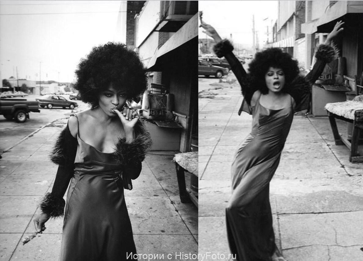 Американская певица Дайана Росс гуляет по улицам Лос-Анджелеса (США), ест мясо на ребрышках и дурачится. 1973 г.