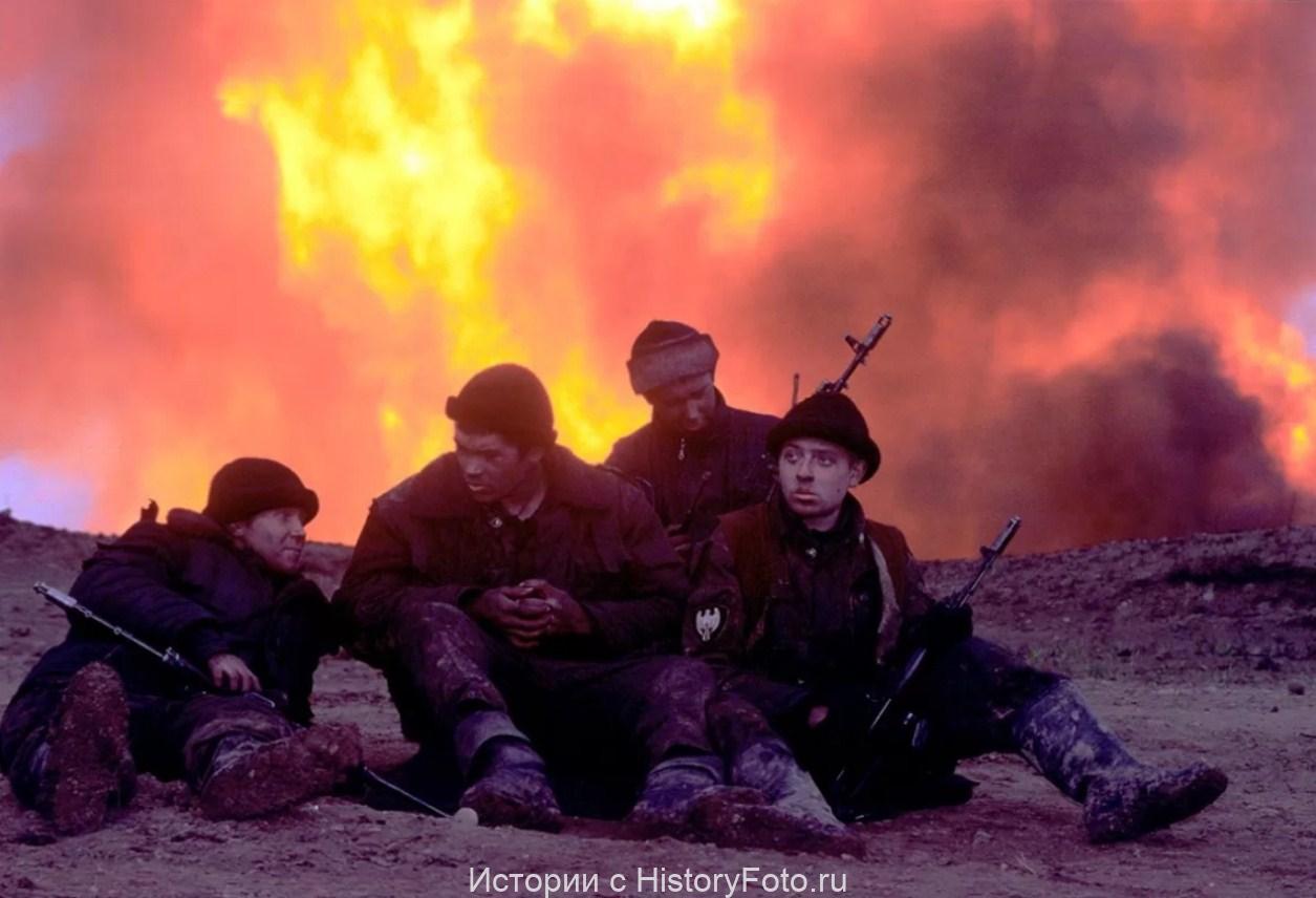 Бойцы внутренних войск из Центрального Округа ВВ МВД РФ (Софринцы) греются у горящей нефтяной скважины рядом с Грозным. Чеченская республика, Российская Федерация. Январь 2000 года. Фотограф Владимир Веленгурин.