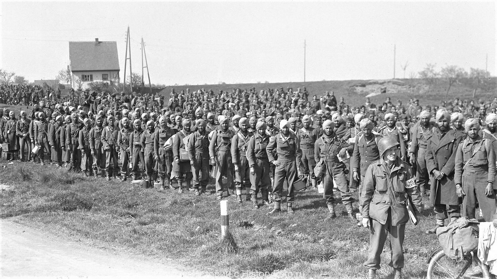 Примерно каждый четвертый солдат воюющей Британской империи был индийцем. В истории человечества «Британская индийская армия» периода Второй мировой войны считается самой большой наемной армией мира. В августе 1944 года именно индийцы при помощи итальянских партизан овладели Флоренцией. На севере страны именно индийские части первыми вышли на границу с Югославией. Британская пресса охотно писала об успехах индийских войск, дабы подчеркнуть трогательное единодушие народов империи. На снимке индийские солдаты, освобожденные американцами из лагеря в городе Диллинген-на-Дунае. 24 апреля 1945 года.