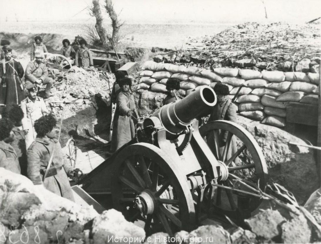 Русская 8-дюймовая мортирная батарея на позиции в 900 шагах от неприятеля у деревни Сандепу. Русско-японская война. 1905 год. Фотограф Карл Карлович Булла.