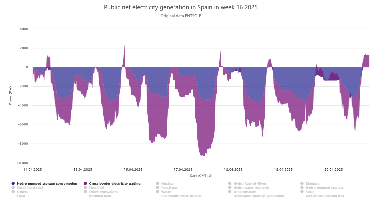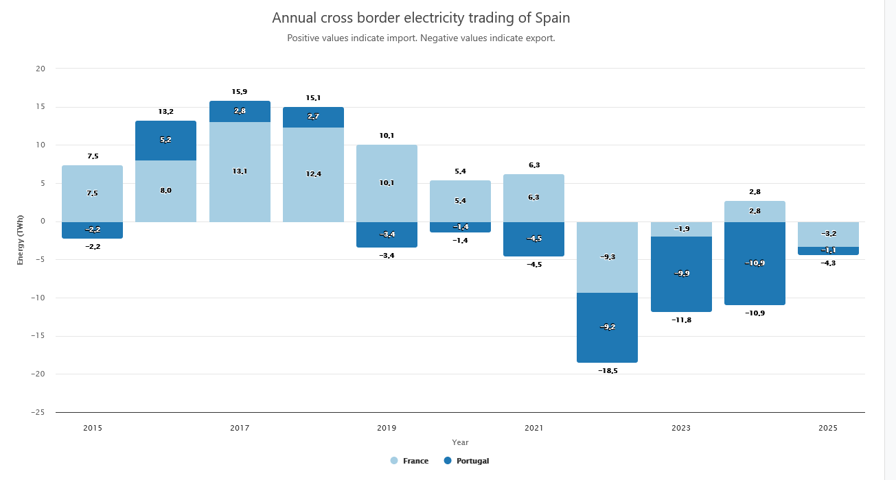 А с 2022 чистым экспортером. Испания граничит, в отличие от Германии, только с двумя странами, куда можно сливать избыток э-э. И если в Германии появляется избыток э-э от ветряков и солнца, то за счет понижения цены она может продавать ее в соседние угольную Польшу, Швейцарию и т д. Испании тяжелее, так как основной сосед – Франция имеет мощную нерегулируемую атомную энергетику.