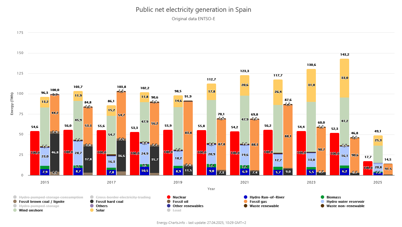 Они закрыты полностью. 7 из 15 аж в 2020-м, As Pontes мощностью 1468 МВт из 3,2 ГВт в 2024, электростанция работала с 1976 года, ранее планировалось продлить сроки эксплуатации еще на 25 лет, но рост ВИЭ внес свои коррективы.Ну и так далее