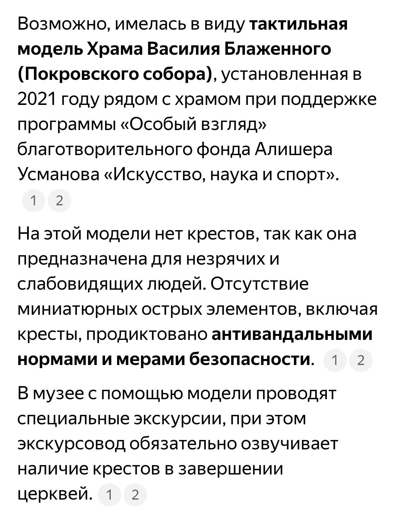 Есть ещё свежая версия от правительства Москвы - это забота о слепых - для них постоянно создают тактильные модели, а о модель Храма Василия Блаженного можно пораниться о крест при ощупывании куполов. Очевидно, не иначе, как на цветность ощупывают
