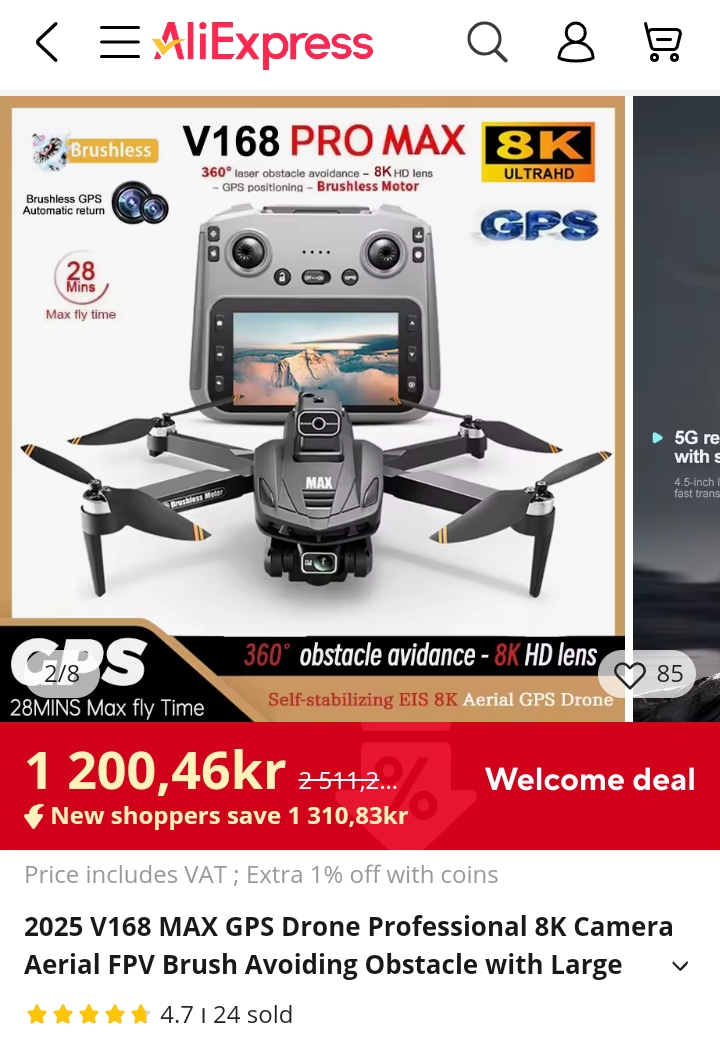 Наценка 250-300 процентов к ценам АлиЭкспресс. Вот за 120 долларов (1200 норвежских крон) для модели с 1 кг полезной нагрузки.