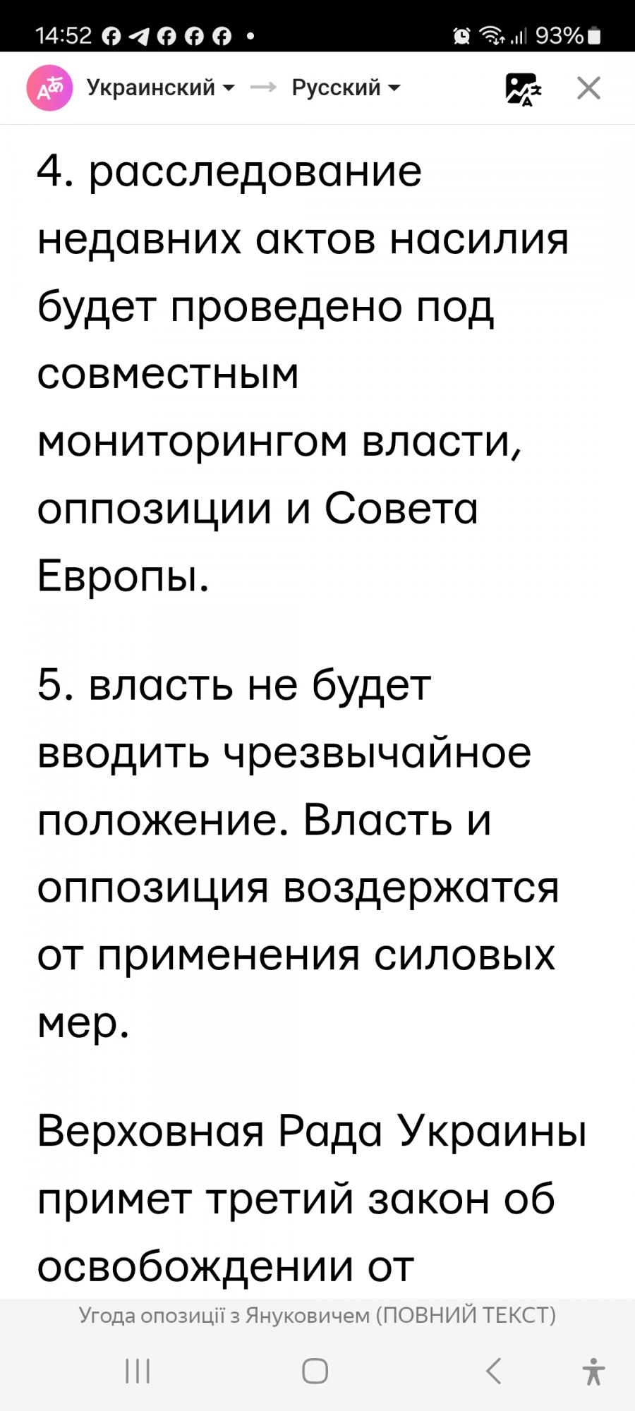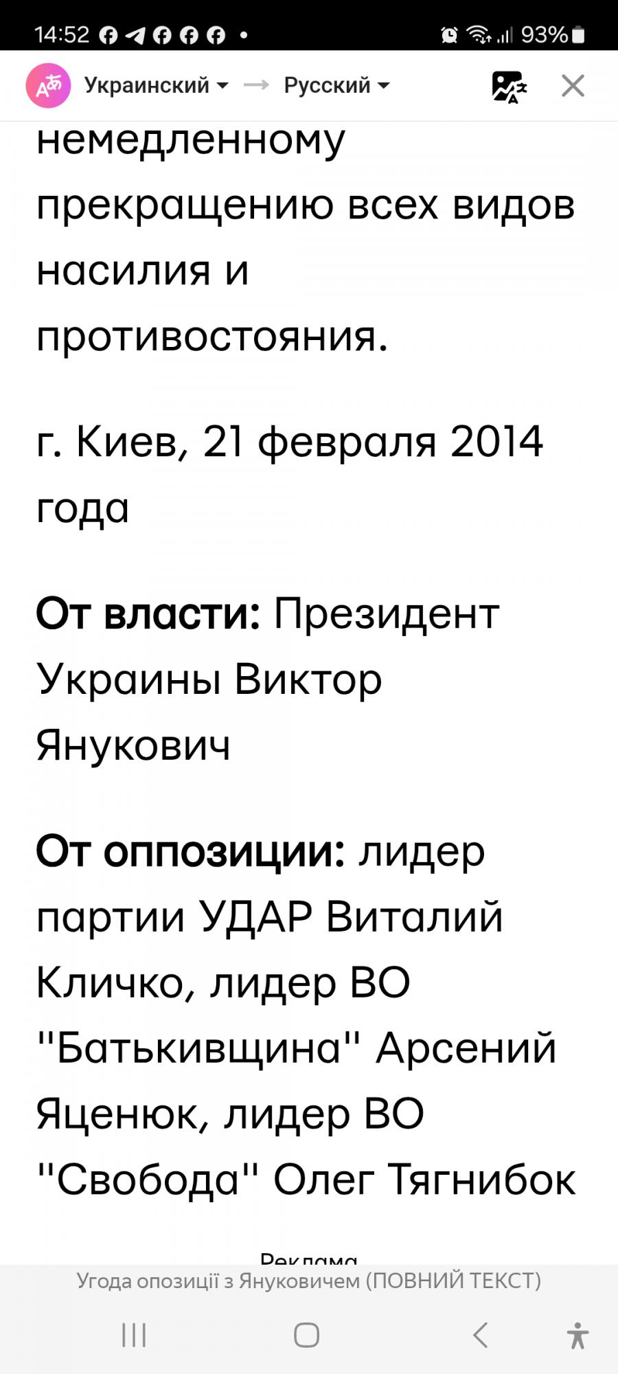 Ярош заявил, что по их мнению в Соглашении отсутствуют чёткие обязательства относительно отставки президента, роспуска Верховной Рады, наказания руководителей силовых ведомств и исполнителей "преступных приказов, в результате которых было убито около сотни украинских граждан". Укронацисты во главе с "Правым сектором" ОТКАЗАЛИСЬ выполнять Соглашение.