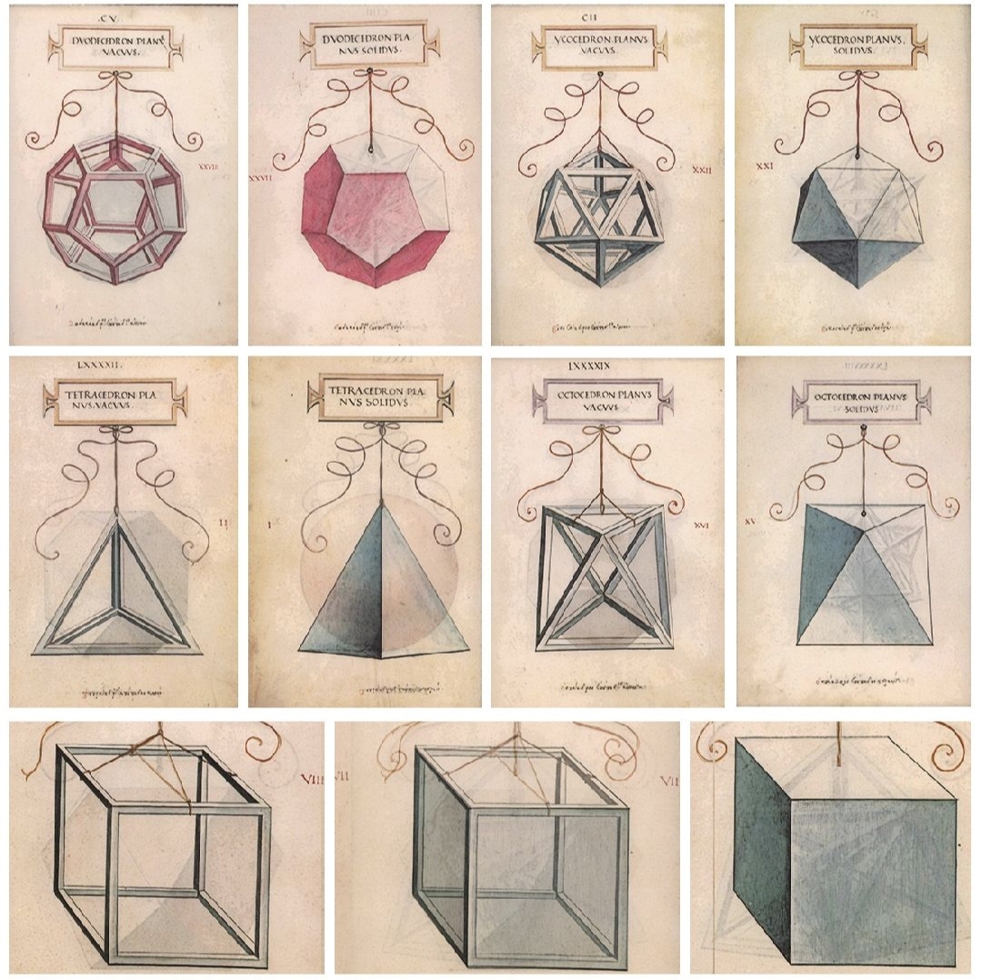 Как показал Л. Ольшки, Пачоли был хорошо знаком с математическими идеями Платона по его "Тимею". По примеру пифагорейцев Платон полагал, "что четыре или пять стихий состоят из правильных тел. Он представлял себе, что однородная, составляющая тело мира материя, сгущаясь известным образом в небольшие, невидимые тетраэдры, образует стихию огня, а в гексаэдры - стихию земли... Между этими крайними телами помещались затем в виде связующих звеньев икосаэдр и октаэдр, причем первый получил форму стихии воды, а второй форму стихии воздуха. Пятое из правильных тел, додекаэдр, представляло, по мнению пифагорейцев, эфир и символизировало у Платона упорядоченную форму мирового целого. Переход одной стихии в другую изображался в виде преобразования правильных тел друг в друга. Таким образом платоновская физика сливалась со стереометрией" (7). И у Пачоли, разделявшего эти пифаогорейски-платоновские представления, стереометрия оказывалась главным звеном его математических изысканий.