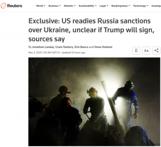 Агентство Reuters сообщило в марте, что Соединённые Штаты разрабатывают план по потенциальному смягчению санкций в отношении России, но в последние недели Трамп выразил недовольство тем, что Путин тянет время с прекращением вторжения, и в прошлую субботу провёл «очень продуктивную» встречу с Зеленским в Ватикане.