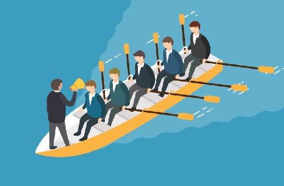 Судя по волне - лодка плывет вперед. а гребцы сидят для гребли назад. Может им дать весла от каноэ?