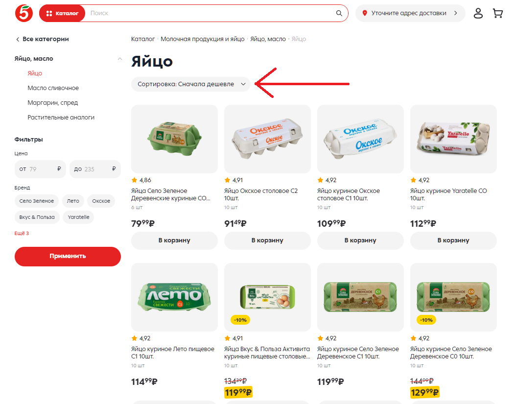 Постом выше скрин из пятерки - самые дешевые Оркские яйца по 91,5 рублей за десяток С2. Но это дерьмовые яйца, я беру Лето С2 по 97.