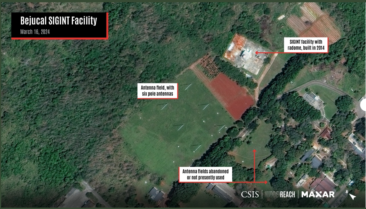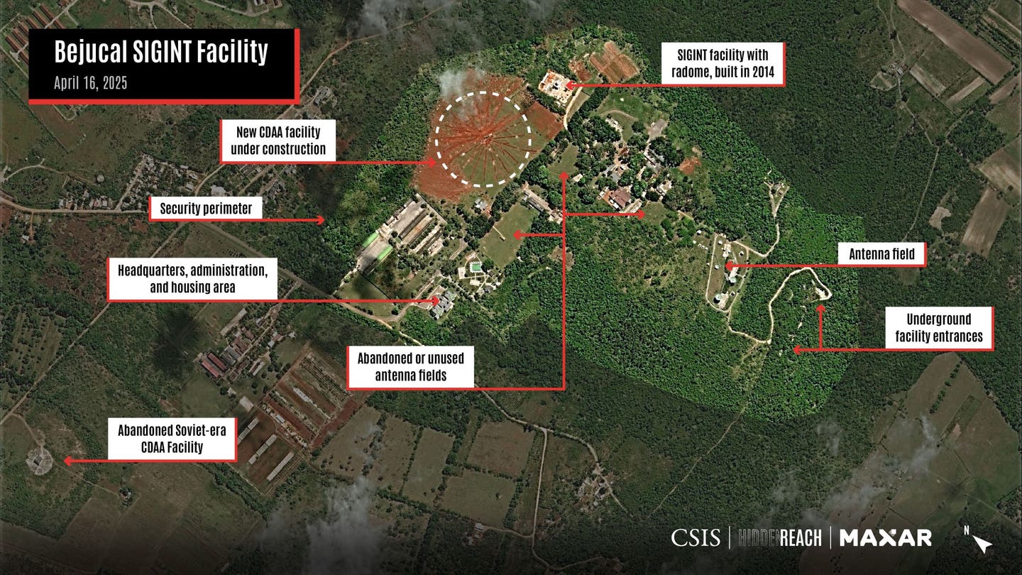 В новом отчёте, анализирующем разведданные из открытых источников, говорится о том, что на объекте радиотехнической разведки в Бехукале недалеко от Гаваны, Куба, была установлена, по-видимому, круговая антенная решётка (CDAA). Антенна может улавливать радиосигналы на расстоянии от 3000 до 8000 миль, что позволяет ей охватывать ключевые военные объекты США и даже Вашингтон, округ Колумбия.