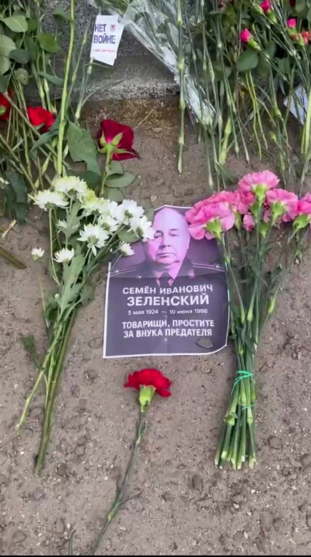 В Берлине к монументу "Воин-освободитель" в Трептов-парке вместе с цветами положили листовку с портретом деда Владимира Зеленского.