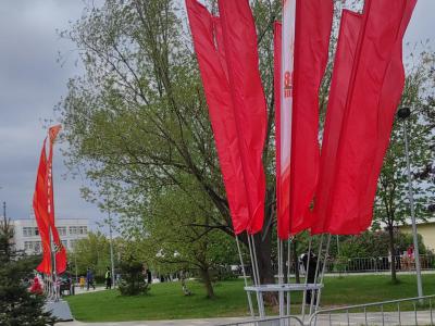 хохлоохломонов, залитые шары которых не видят флаги Победы.Москва, Россия. Сегодня