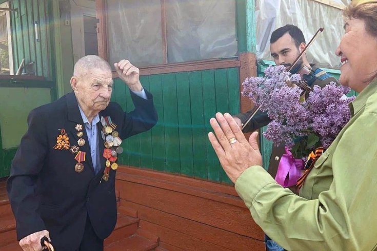 Май 2024 года. Артисты Регионального центра Курмангазы устроили для Аркадия Степанова концерт у дома. / Региональный центр Курмангазы