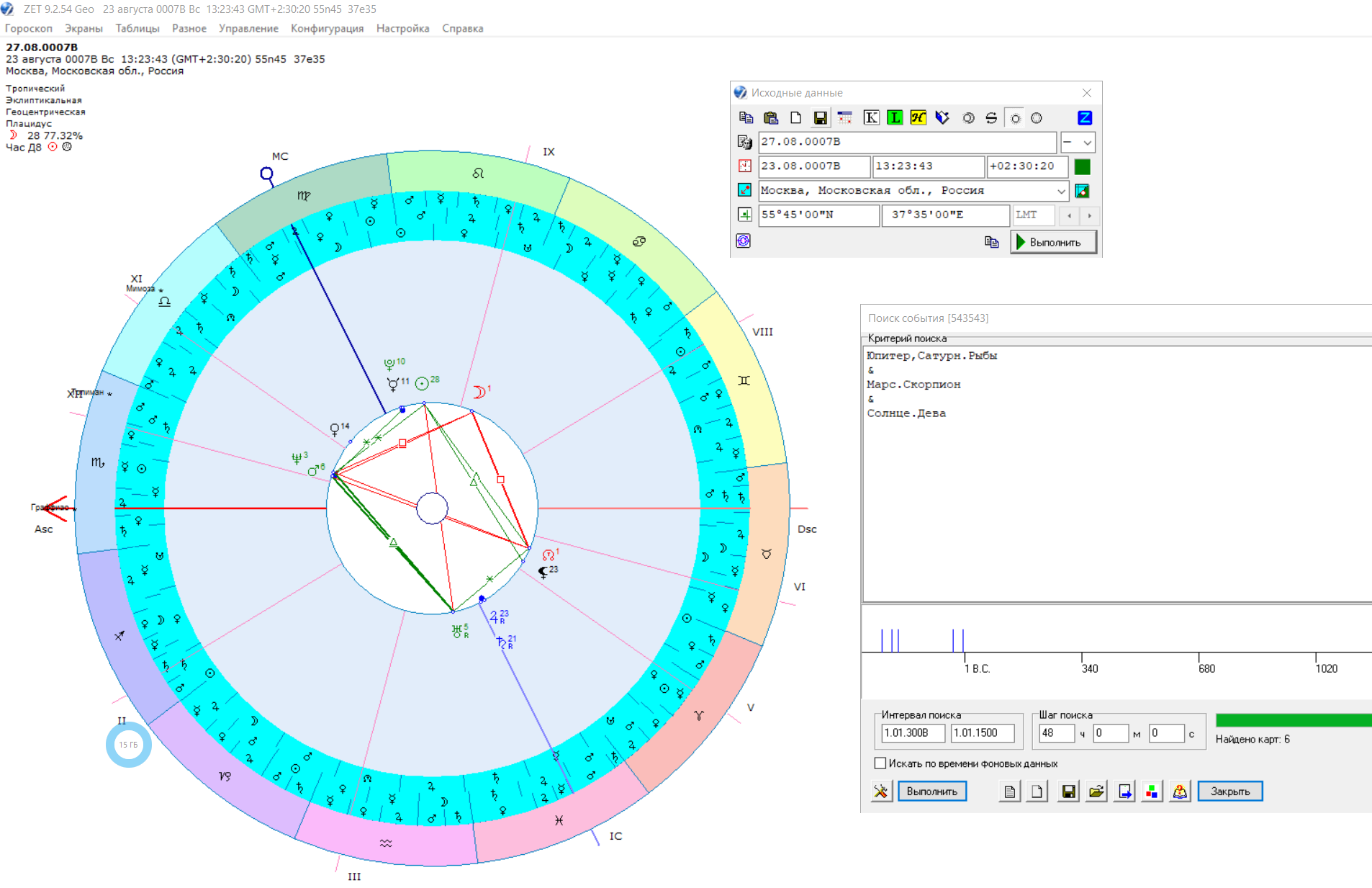 У меня получилось, что по программе хорос - это 23 августа 6 года до нашей эры, а в АстроЗет - 23 августа 7 до Р.Х.