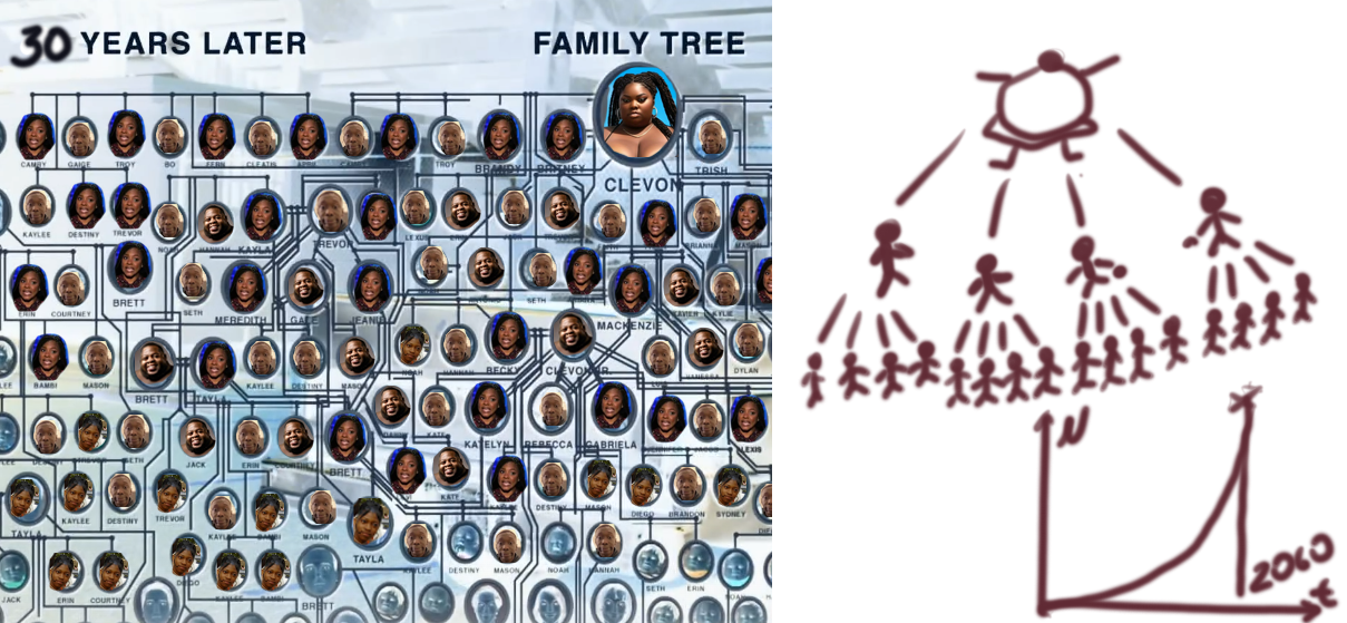 Я слышал этот прикол от нескольких человек, что в этой зоне у негров наступил самый настоящий коммунизм. Мама с юбкой получает пособие на каждого рождённого негритёнка, чтобы ей было чем кормить. Потому что, если им не платить просто так, они начнут грабить, и они начнут массово ходить в эти стороны и грабить реднеков. А реднеков грабить нельзя, потому что реднек сюда приехал стать элитой. А если он сюда приехал, а его грабят, он уедет. А чтобы он не уезжал и продолжал работать 60 часов в неделю, нужно, чтобы афроамериканцы не добрались до вот этих ребят, и эти ребята также здесь живут. Кстати, элита, живущая здесь, катающиеся по магистралям над землёй, с афроамериканцами абсолютно не пересекается, это вообще их проблема не интересует, они для этого платят огромные деньги за эту безопасность. И когда рассказывают нам истории о том, что в Америке Зомби-апокалипсис, вот эти ребятки, которые уже попали сюда, и у них это всё вызывает улыбку, их проблема вот это абсолютно не интересует, они откупились, они живут над этим всем в прямом смысле этого слова. Так вот, мамаш родила четырёх негритят, это я сам видел своими глазами, и каждый вечер возит их кушать в McDonald’s. И я был удивлён, откуда у неё деньги, чтобы прокормить четырёх детей в McDonald’s. Она накрывает им поляну, они жрут и жрут. 15 лет назад негритятам было по 5-10 лет, сейчас негритятам по 20-25, а сегодня каждый негритёнок, которых я видел, родил по трёх негритят. Через ещё одно поколение, через 20 лет примерно, в 2045 году, каждый негритёнок уже внук этой родит ей ещё по три правнука. Так выглядит геометрическая прогрессия – это время, это количество афроамериканцев. Это 2060 год, вот это называется катастрофа. В 2008 начали с одной и закончили вот таким количеством афроамериканцев. Это всё за счёт того, что она живёт бесплатно, ей платят, её мотивируют, чтобы она их ждала и рожала. Поэтому это Зомби-апокалипсис примерно в 2060 году. Это могут понять, легко рассчитать, видя эту картинку, люди, которые закончили восемь классов образования.