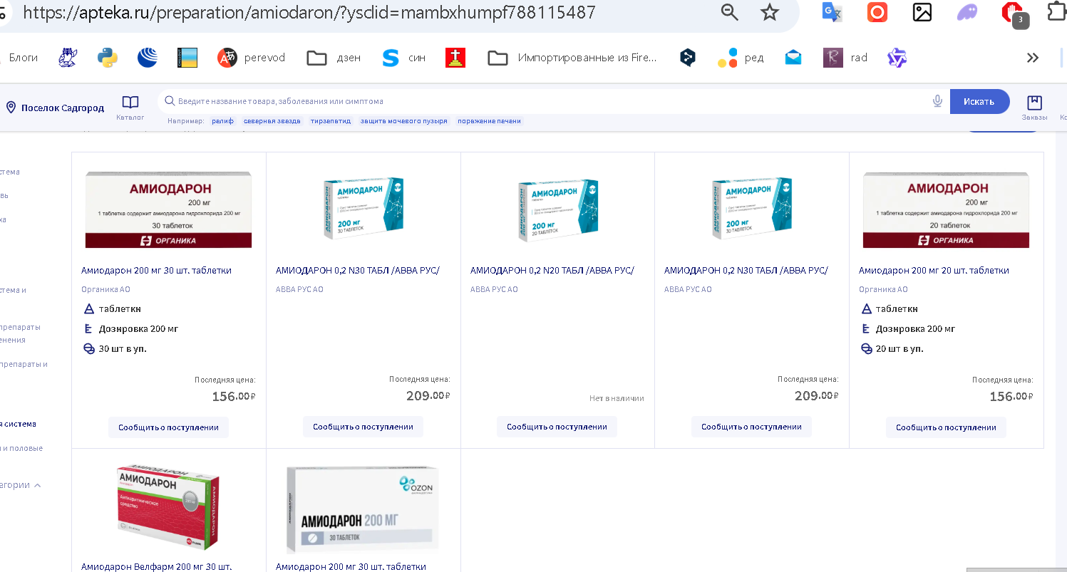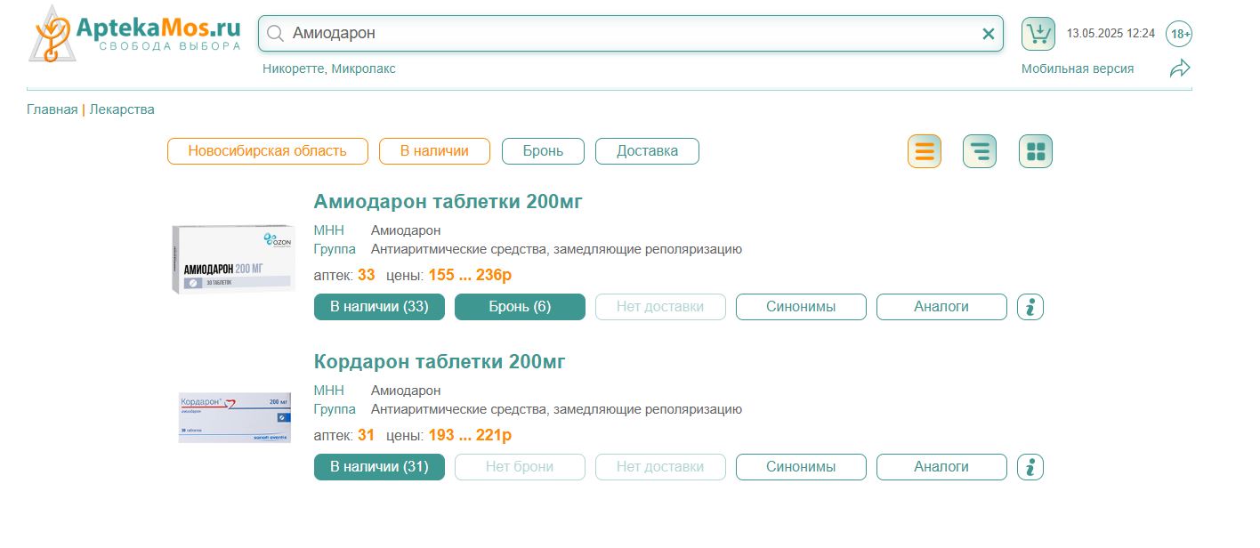 Аптечные сайты советуют искать аналоги, но и тут проблема: лекарство продают только по рецепту. Аналогичные препараты может подобрать только кардиолог, а это потеря времени и, зачастую, риск для здоровья: придется заново испытывать на себе все побочные эффекты, к тому же ни одно антиаритмическое лекарство не обладает свойствами амиодарона.