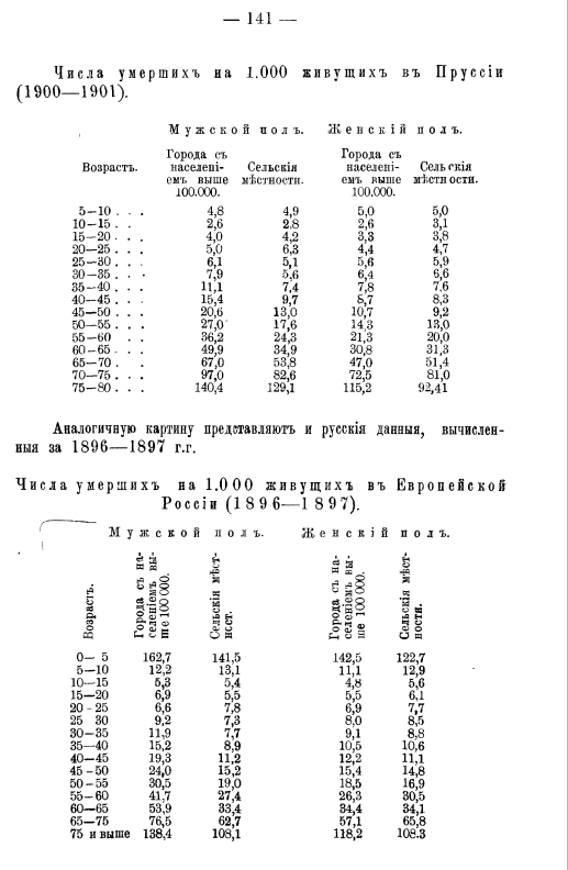 Ну раз Новосельский , то залевые опубликуйте , его статистику о жизни в Петрограде в 1918-1920 .. Продолжительность жизни , сколько в среднем проживал в Петрограде проживал в это время .. То цифры будут страшные и намного ниже хуже , чем здесь приведены в России в 1862 .. Как то выборочно Новосельского цитируют , у него и про 19 год есть и о 30-х .. А то привыкли дергать Новосельского в свою пользу ..