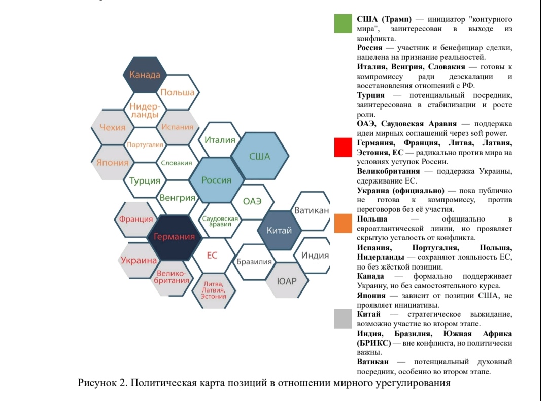Война будет урегулированна только после победы одной из сторон, про другому никак, как ни придумывай птичьи слова про конфликты и стремлении к миру агрессоров американцев и их прокси, мира можно достичь только разгромом ВСУ, либо разгромом МО. А вся эта псевдо научная модель ИИ полная лажа