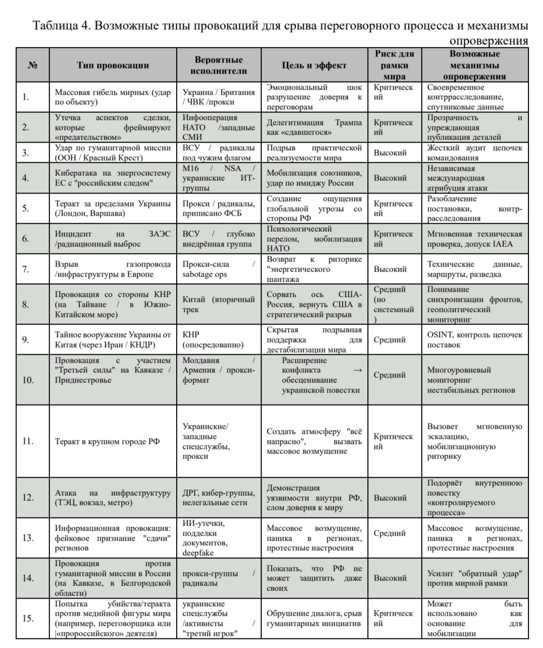 американцевмеждународного сообщества. Т.е. по сути, предупреждение и предостережение.ИМХО, пункты 11-15 нарушаю общую логику (т.к. в последней графе указаны не способы противодействия/опровержения, а, скорее, возможные последствия или цели операции) и, вероятно, пристёгнуты для количества, чтобы разбавить основной материал.